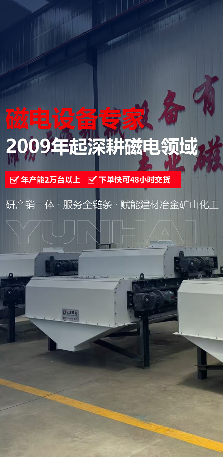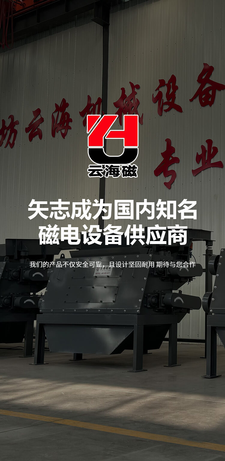 濰坊云海機(jī)械設(shè)備有限公司始建于2009年,是生產(chǎn)磁電機(jī)械設(shè)備的廠家。系生產(chǎn)建材、冶金、礦山、化工等行業(yè)微機(jī)自動化、檢測、控制專用設(shè)備的公司。主要產(chǎn)品工業(yè)自動化配料系統(tǒng)、電磁永磁除鐵器、永磁磁選機(jī)、電磁振動給料機(jī)、皮帶螺旋輸送機(jī)、電磁滾筒、破碎機(jī)、包裝機(jī) 、除塵器等系列產(chǎn)品。